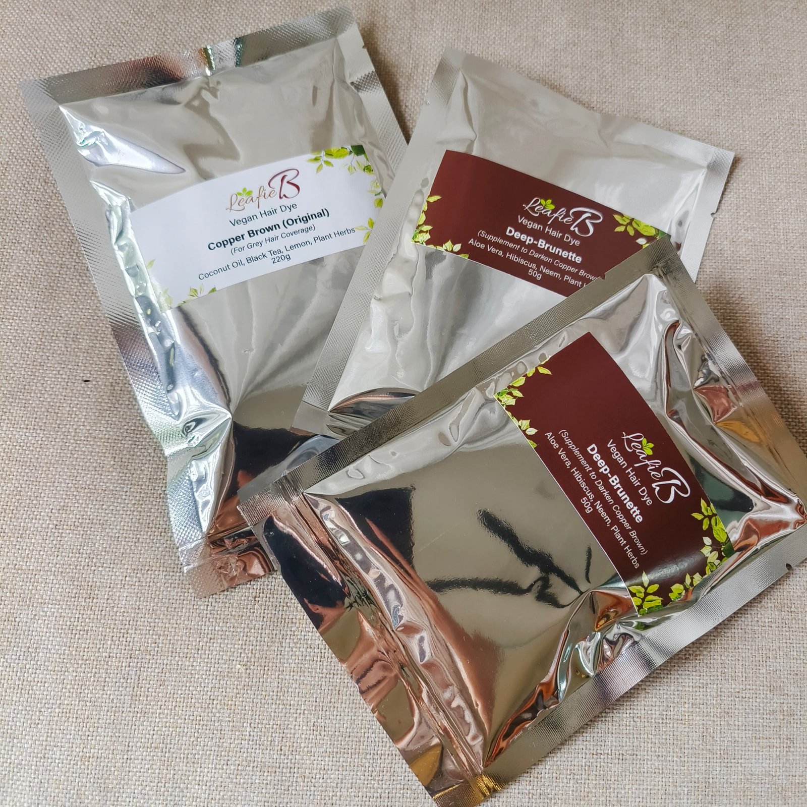 Natural Hair Dye made from plant dye blends for your frequent grey coverage. Packed with herbal botanical nutrients, vitamins and minerals to nourish scalp and hair
